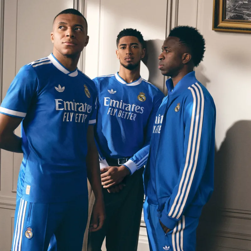 Le nouveau maillot extérieur du Real Madrid pour la saison 2025-2026 combine élégance et modernité. Arborant une couleur bleu foncé